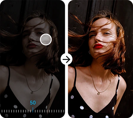 No more awkward, shadow-filled selfies. The Face Fill Light gives you that smooth, glowing look, even in the darkest conditions.