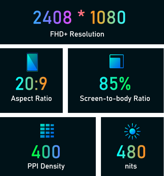 6.583-inch 1080*2408 FHD+ IPS, 85% Screen-to-body Ratio